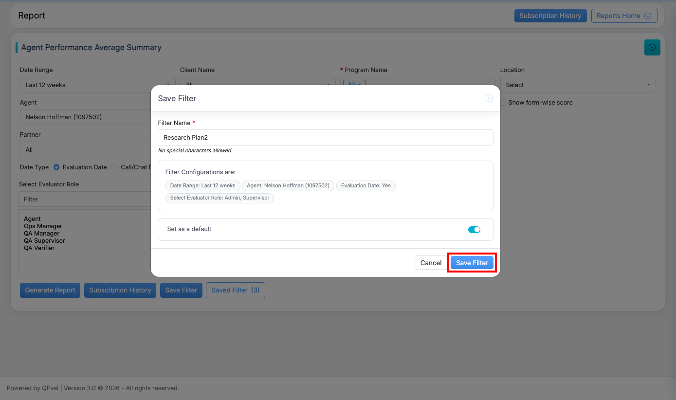 - Toggle On/Off if you want to set it as the Default Filter.