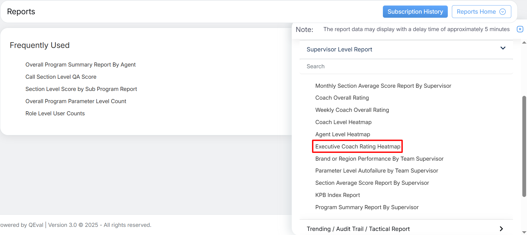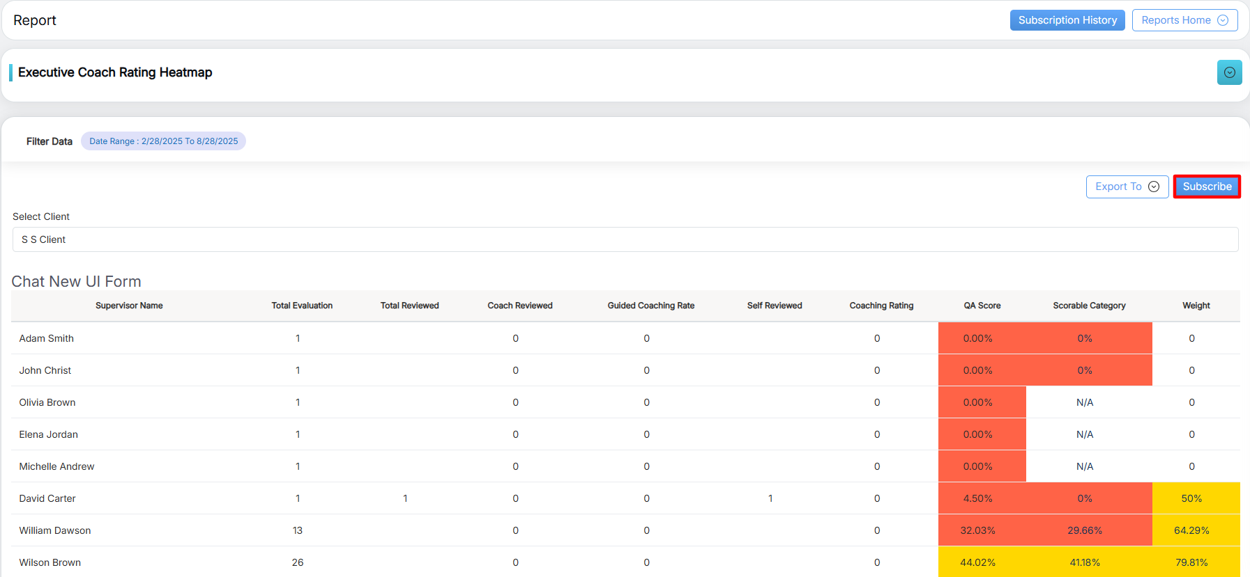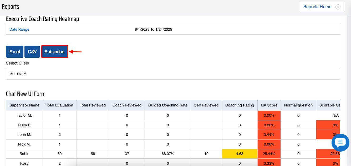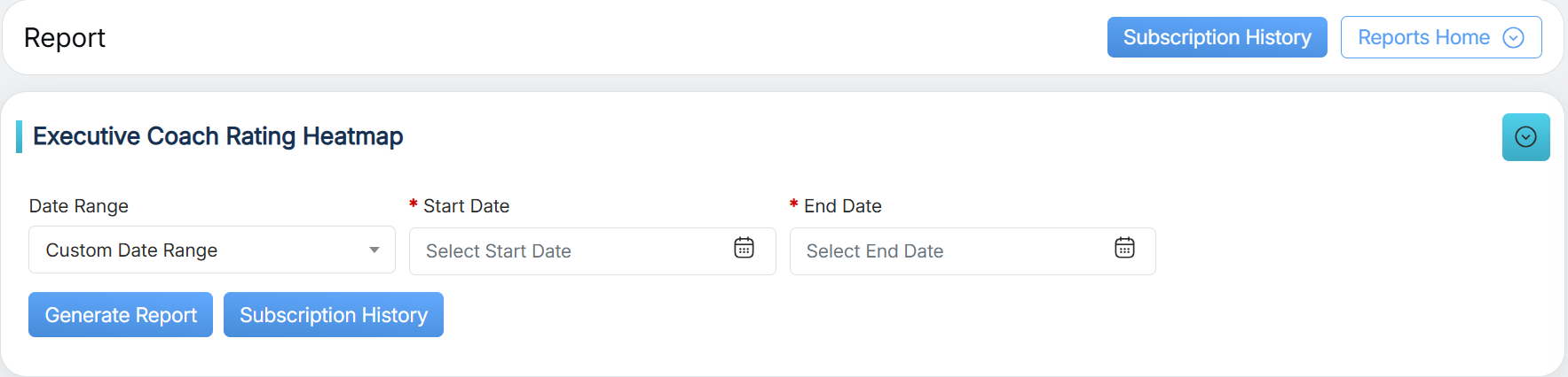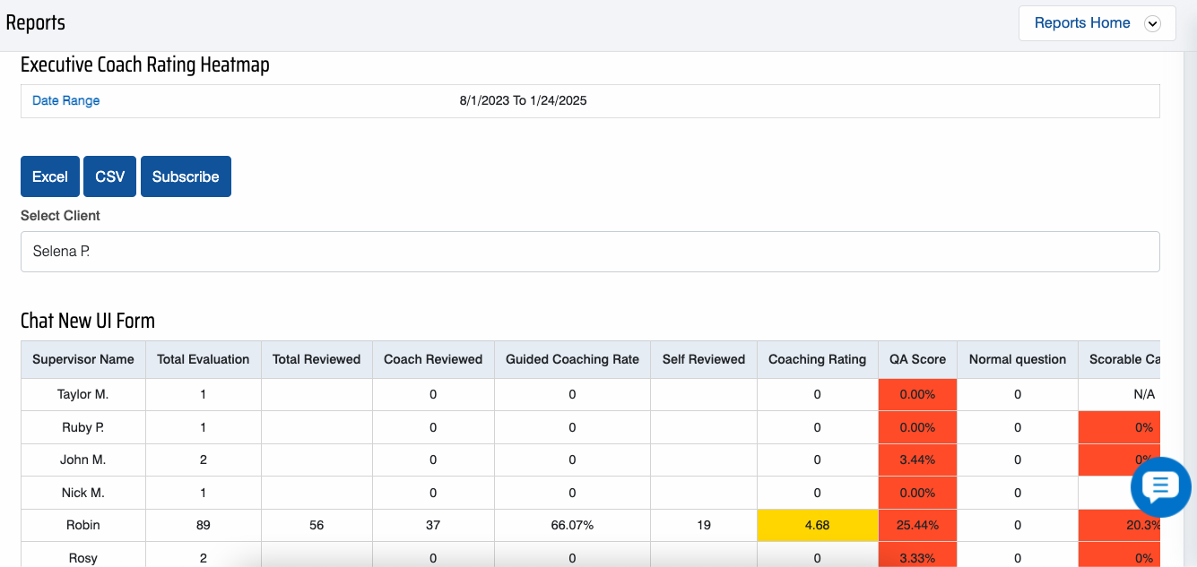 To view this report, select Reports > Report > Supervisor Level Report > Executive Coach Rating Heatmap.