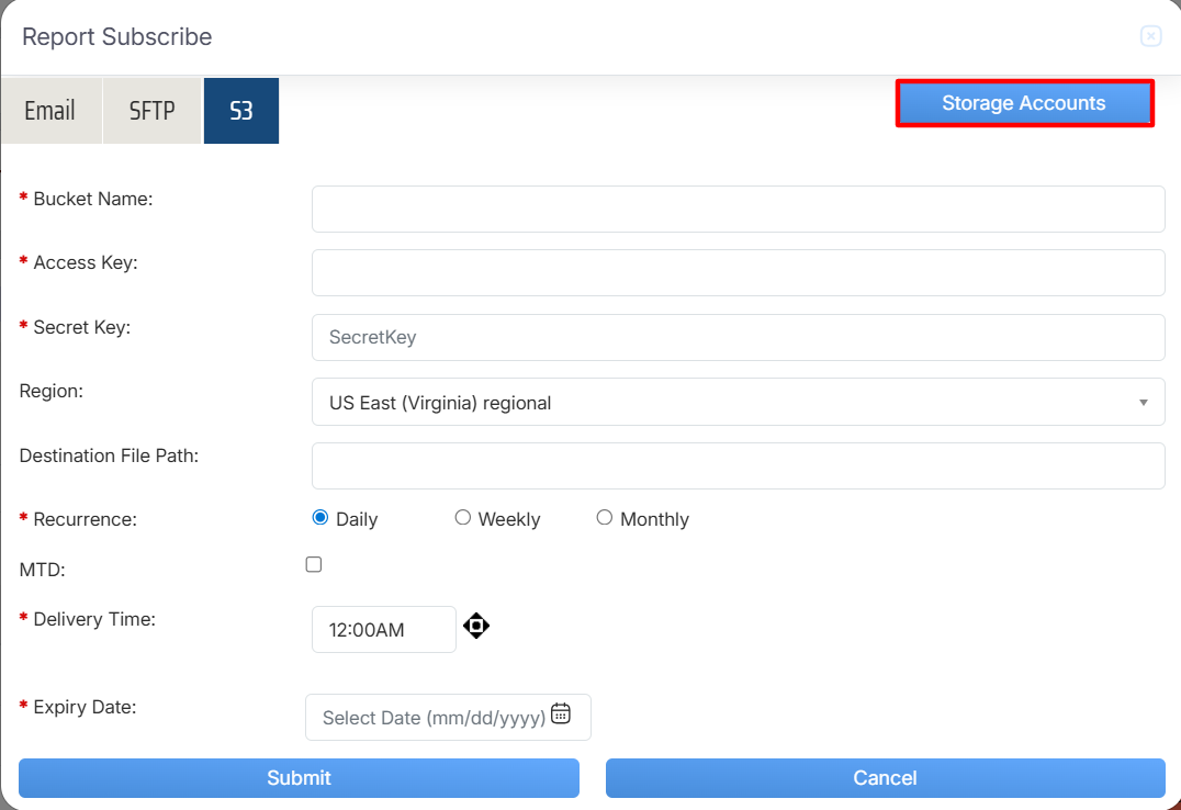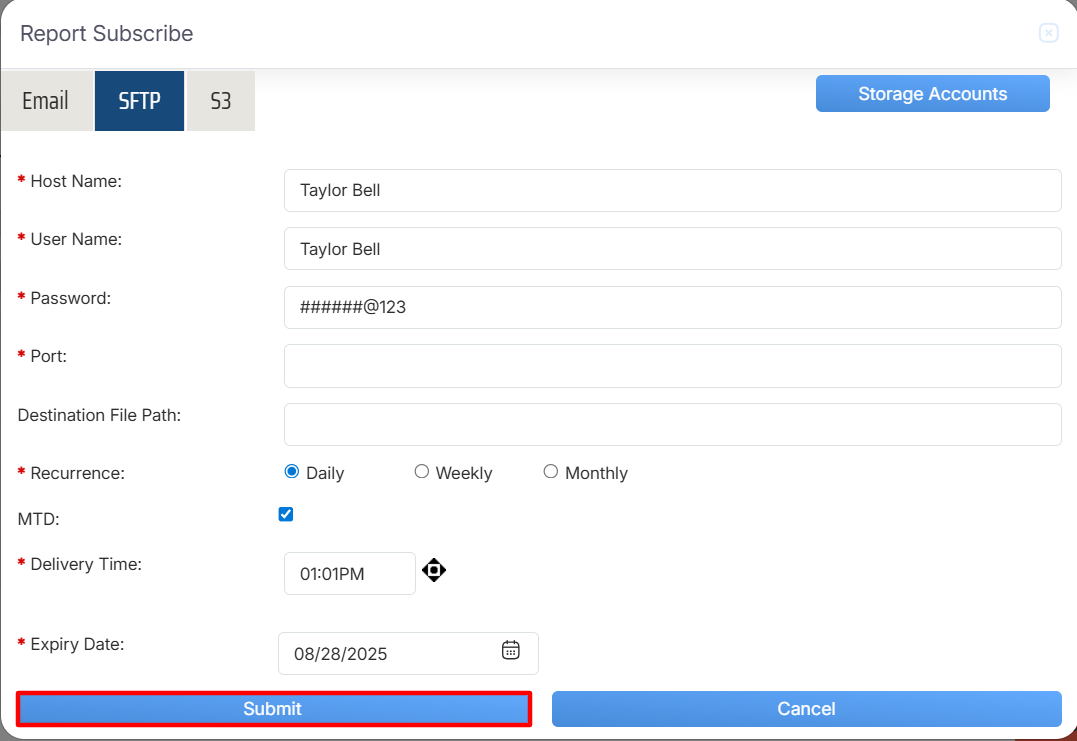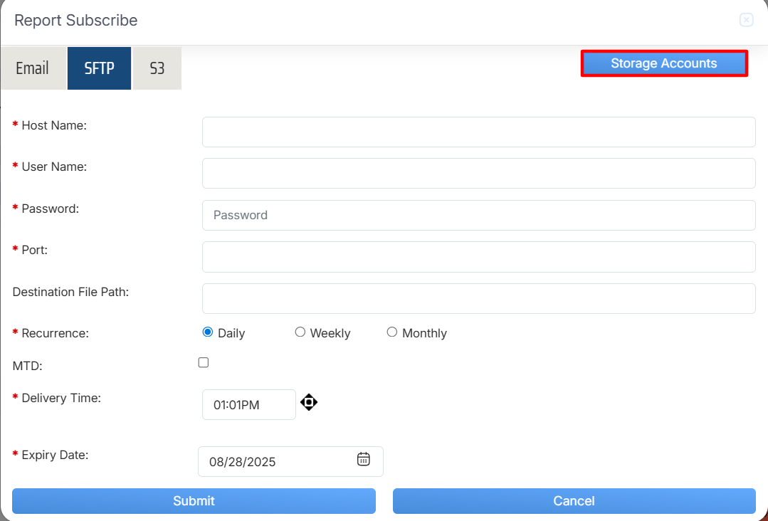 Report Subscribe > SFTP