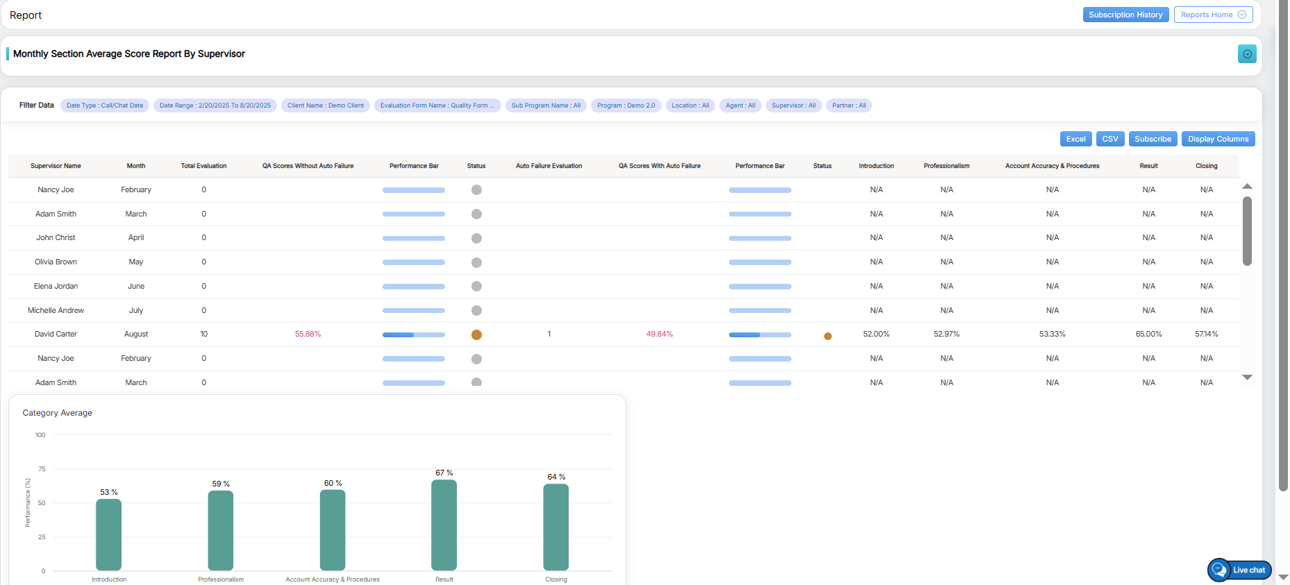 Monthly Section Average Score Report by Supervisor