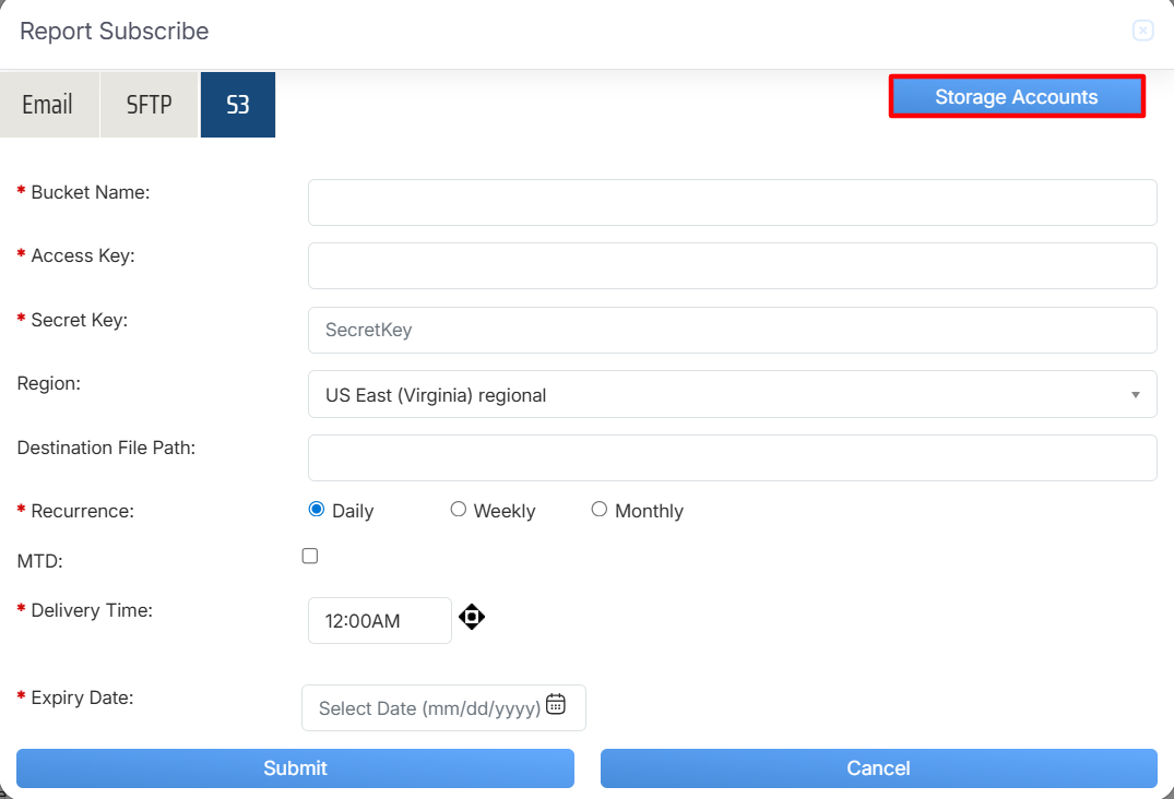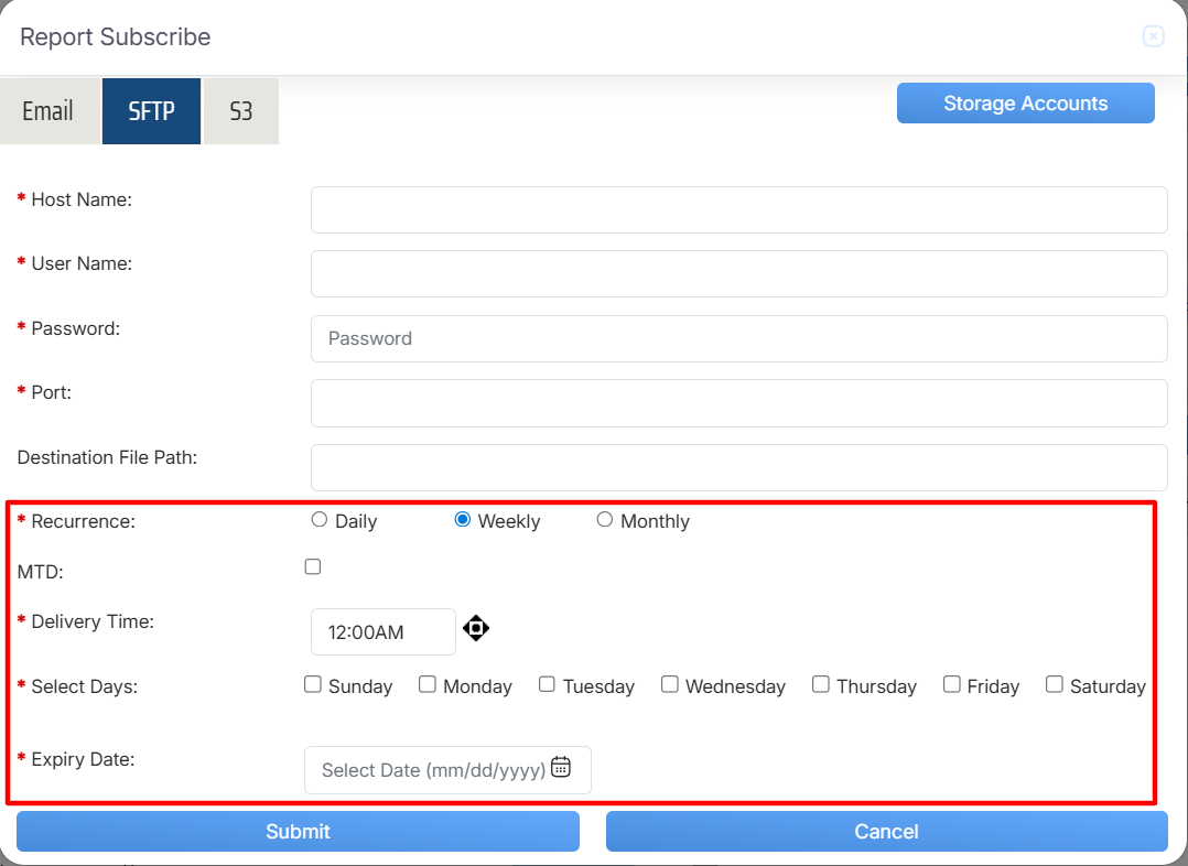 Report Subscribe > SFTP