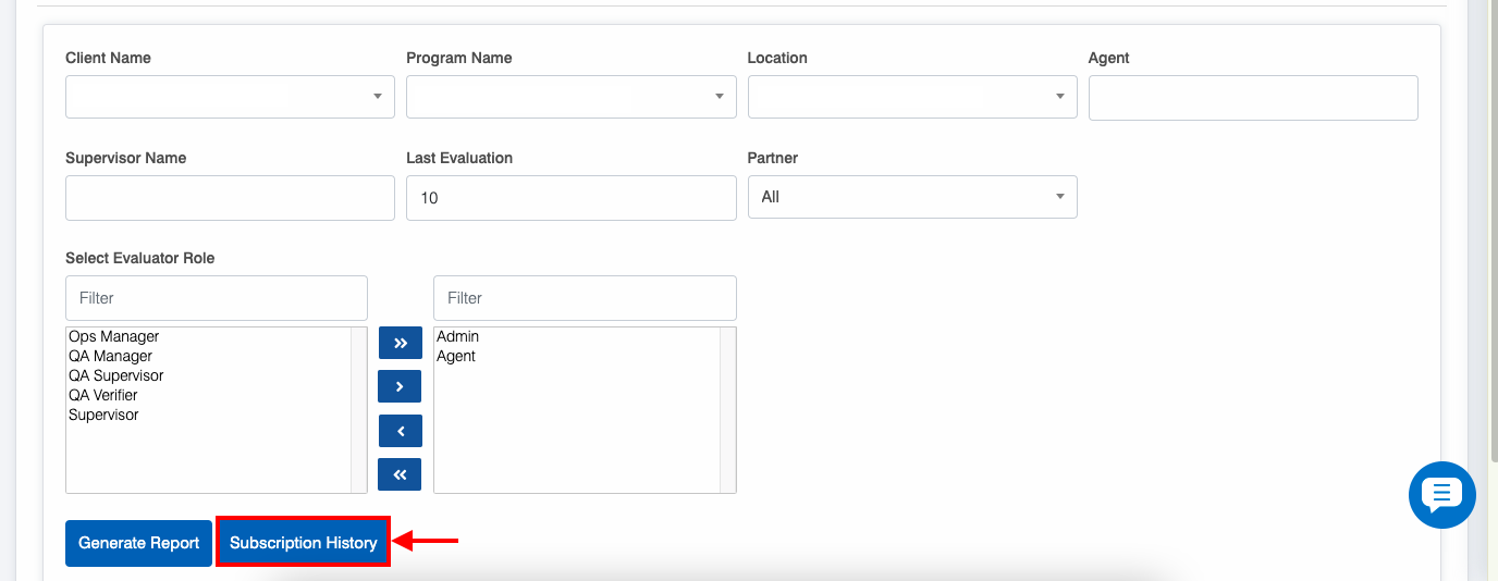 To access this functionality, click on the Subscription History button as highlighted in the screen below-