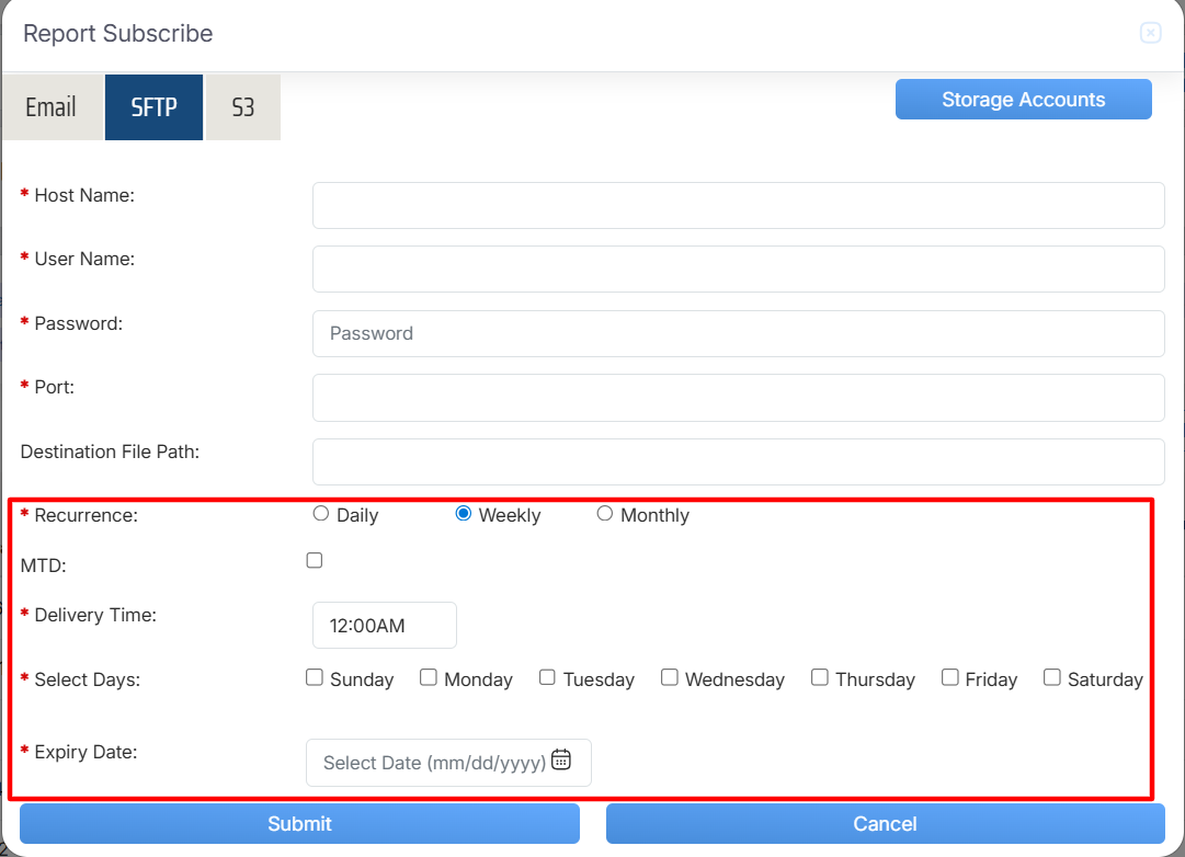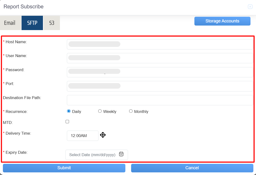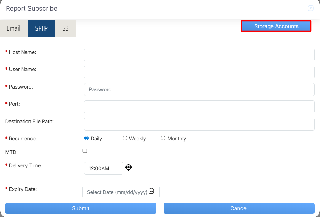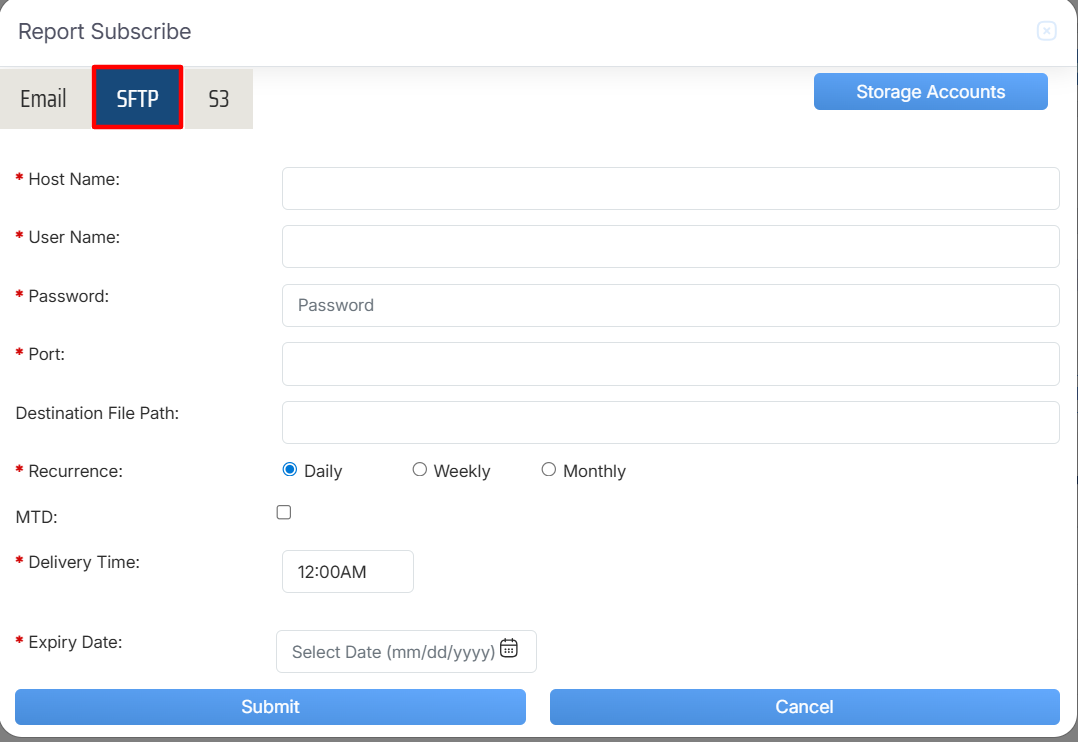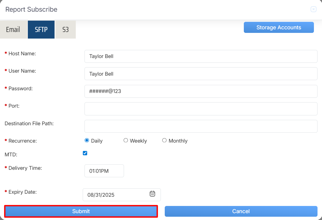 Report Subscribe > SFTP