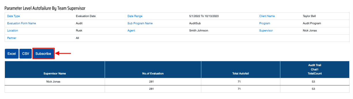 To view this report, select Reports > Report > Supervisor Level Report > Parameter Level Autofailure By Team Supervisor.