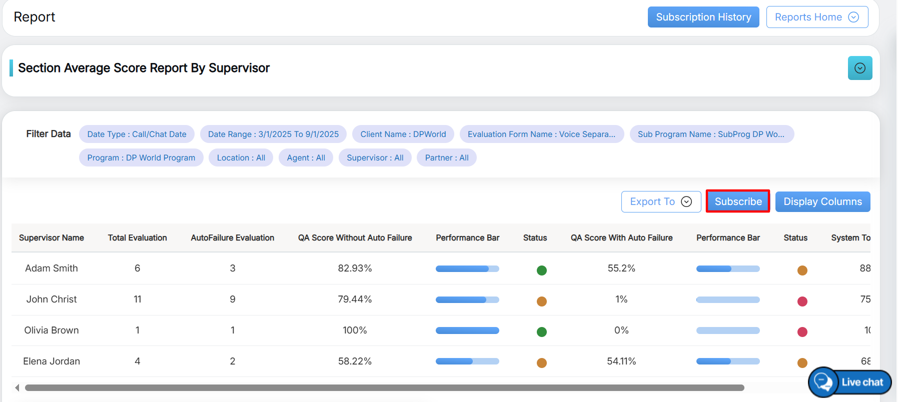 Once the report is generated based on the search criteria, click on the Subscribe button to schedule the specific report as highlighted in the screen below: