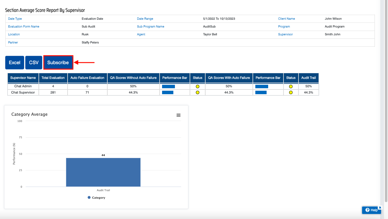 To view this report, select Reports > Report > Supervisor Level Report > Section Average Score Report By Supervisor.