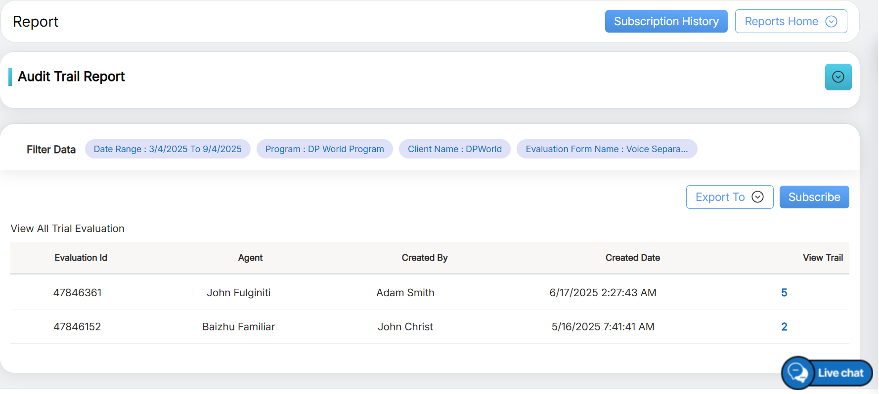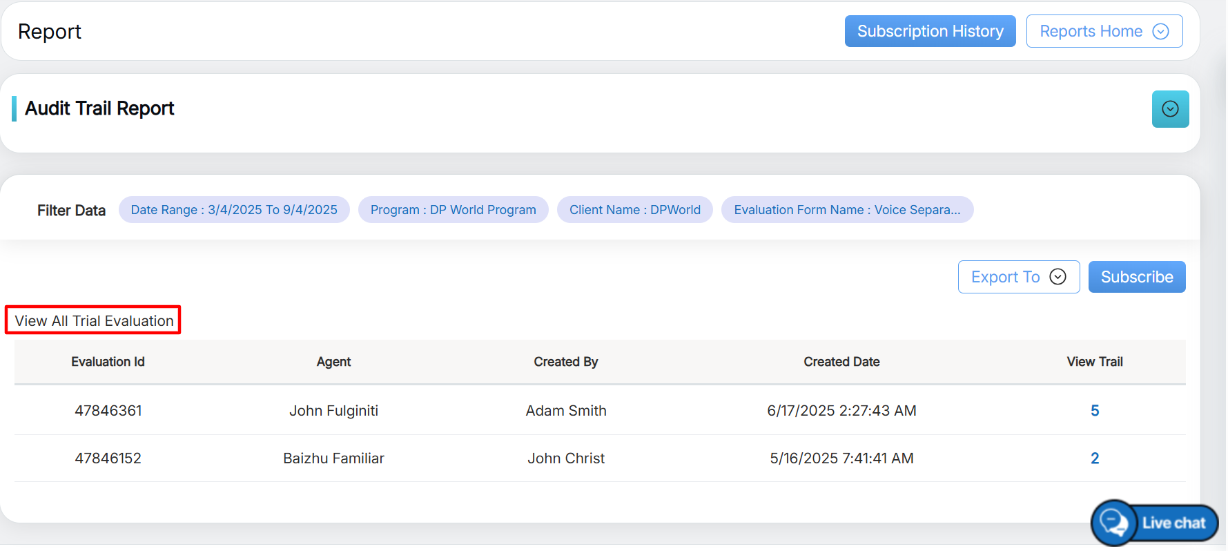 View All Trial Evaluation