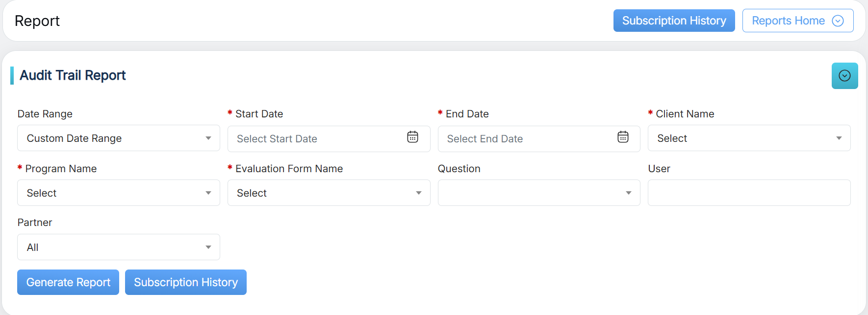 Audit Trail Report displays the changes done in an already submitted evaluation form.