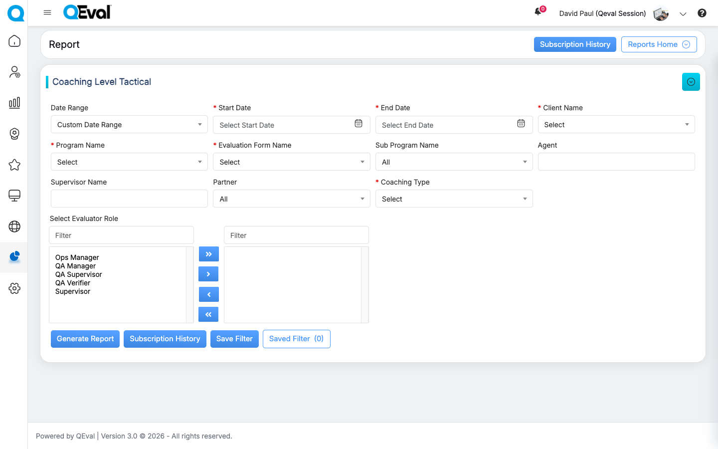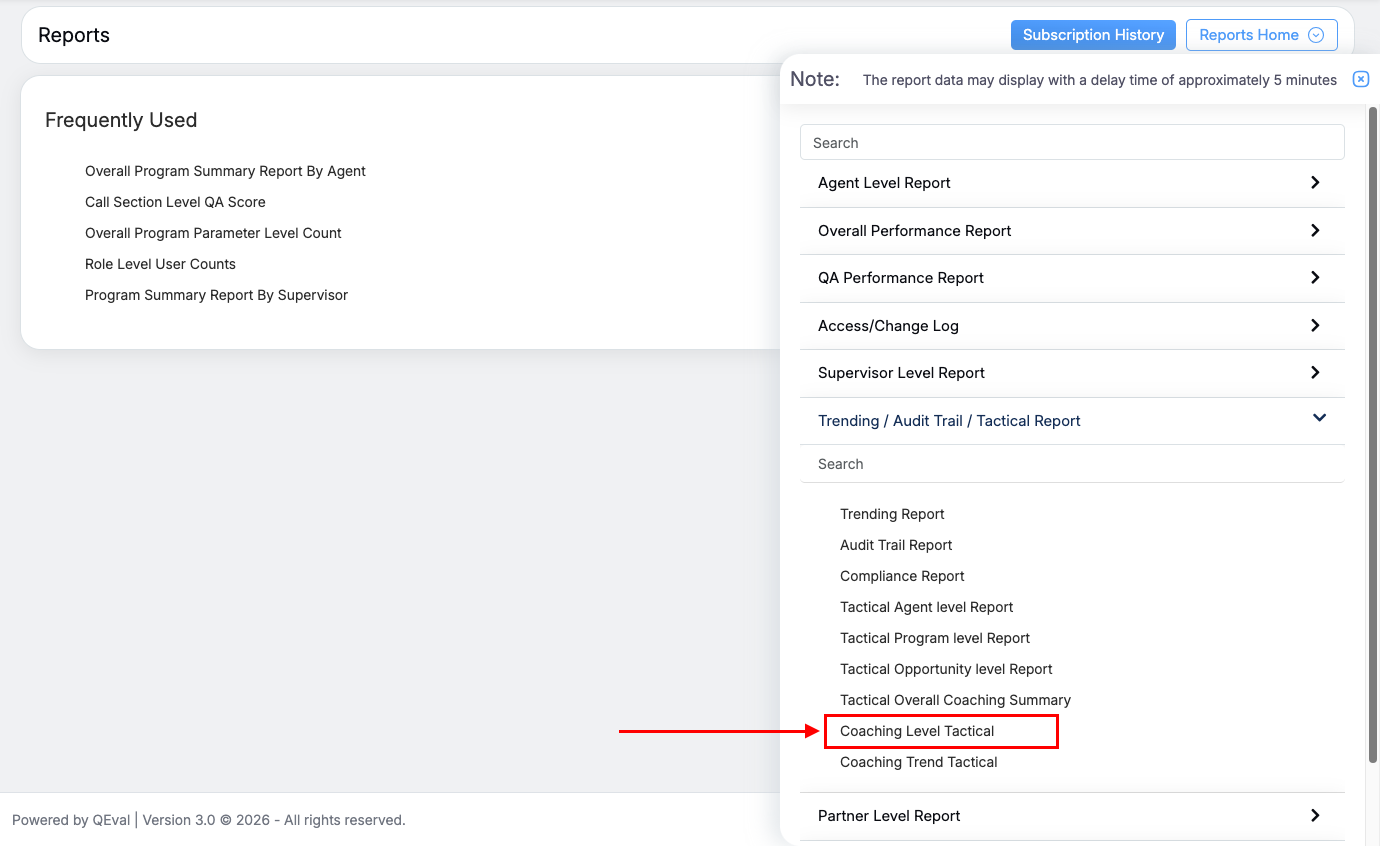 To view this report, select Reports > Report > Trending/Audit Trail /Tactical Report > Coaching Level Tactical as shown below: