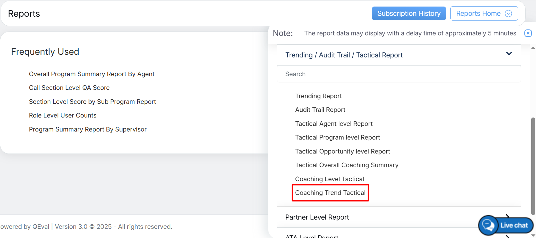To view this report, select Reports > Report > Trending/Audit Trail /Tactical Report > Coaching Trend Tactical as shown below: