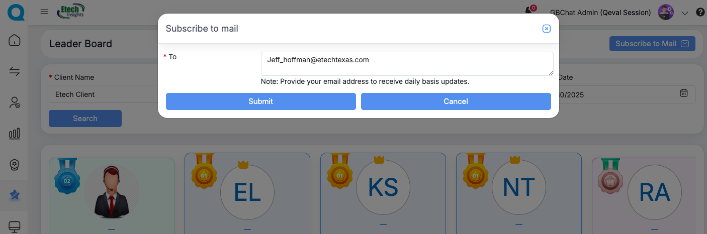 The Leaderboard allows users to subscribe and receive daily leaderboard updates via email.