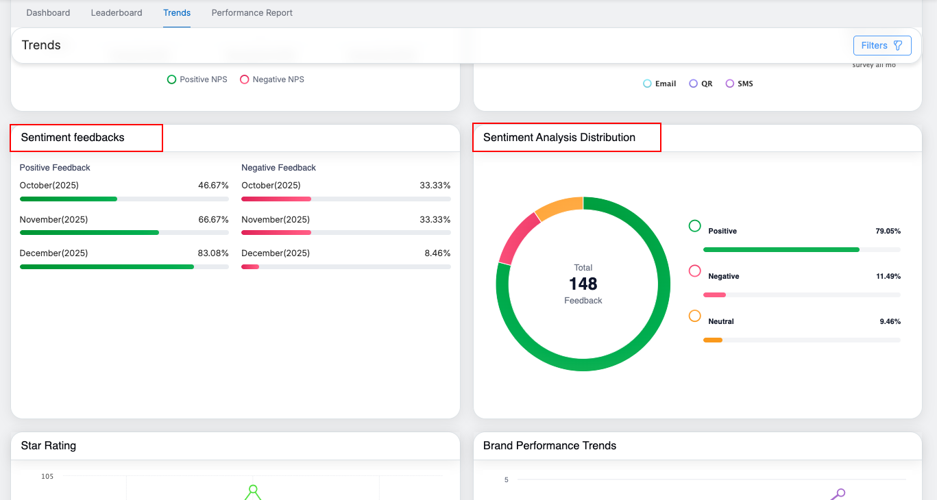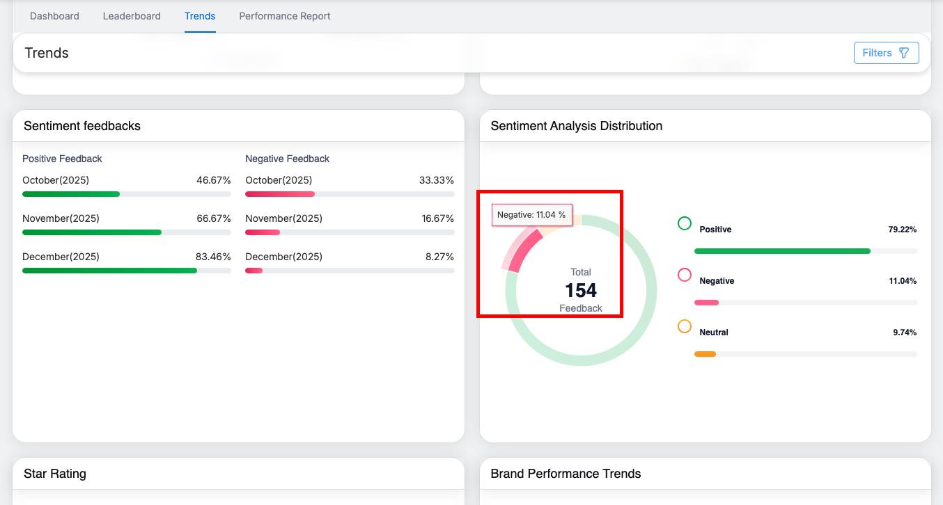 - The Trends page is designed to help users track performance, understand sentiment patterns, and identify actionable insights efficiently.