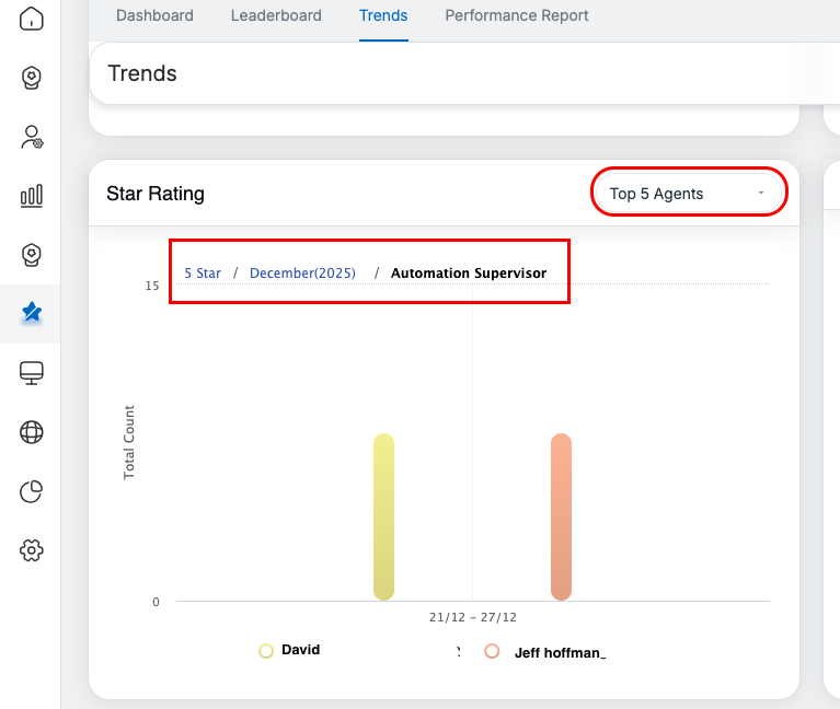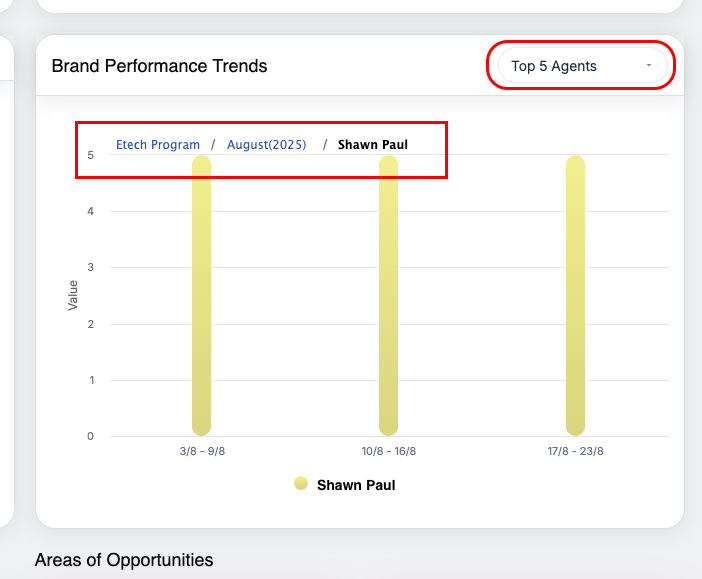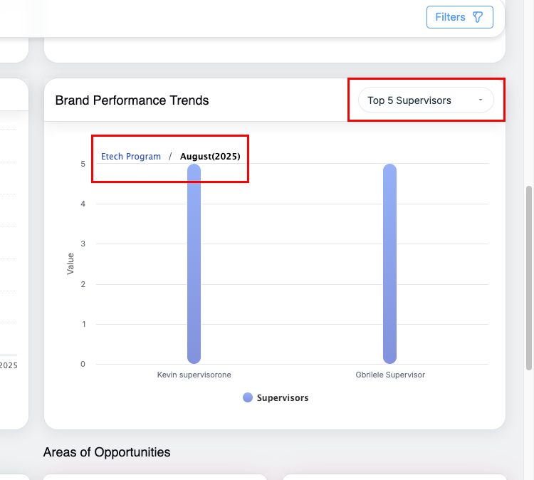 - Default filter state is set to All for Agent, Supervisor, client and Brand.