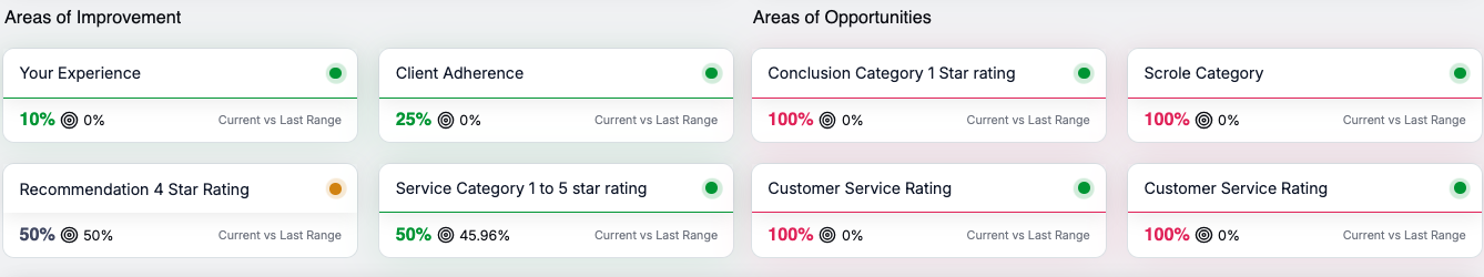 These cards help users quickly assess overall customer sentiment and satisfaction trends.