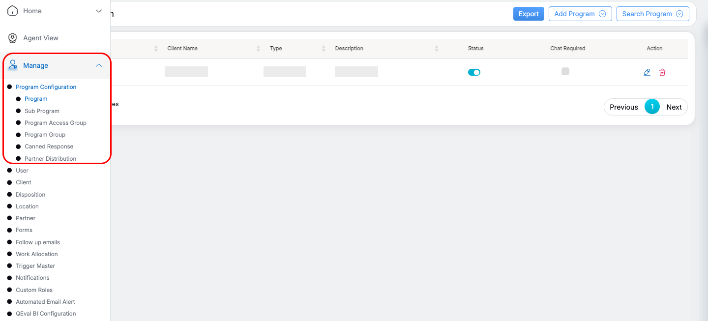 Navigate to Manage > Program Configuration.