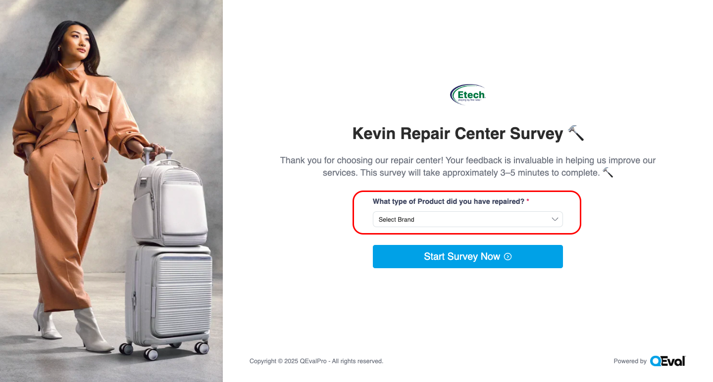The survey form opens with the selected Program/Brand logo displayed at the top-right corner.