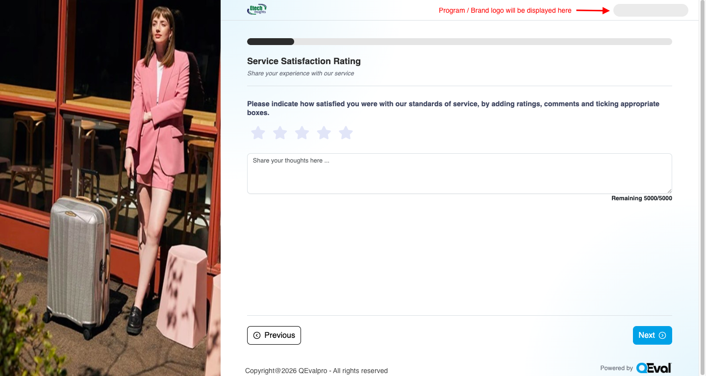 The logo is automatically pulled from Program Level Configuration, ensuring consistent branding throughout the survey experience.
