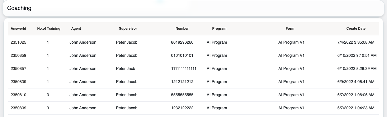 - Total: It displays the total number of training (sum of open and closed coaching) assigned to the agents.